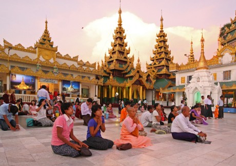 Rangun,Večerná modlitba v Shvedagonskej pagode.jpg